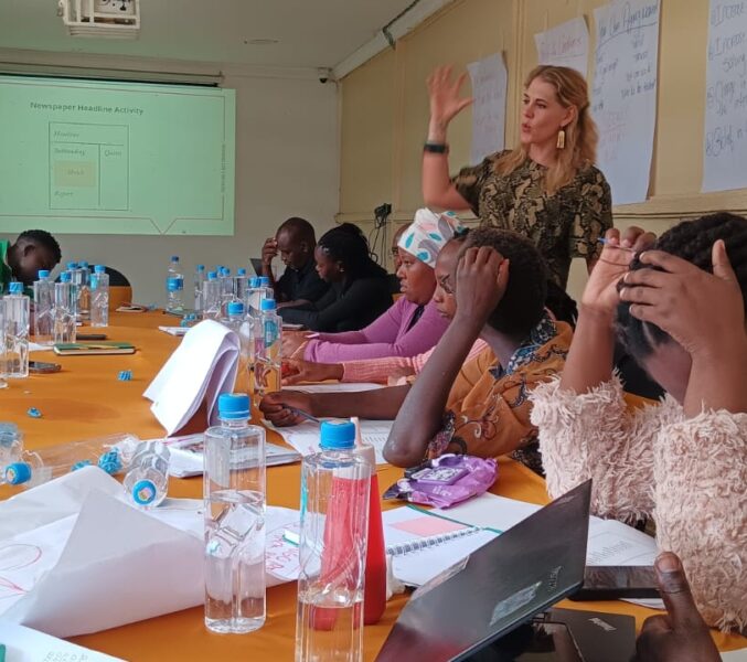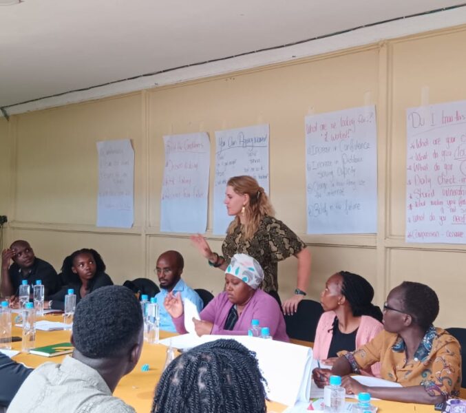 - Trainers engaging in practical exercises and group discussions